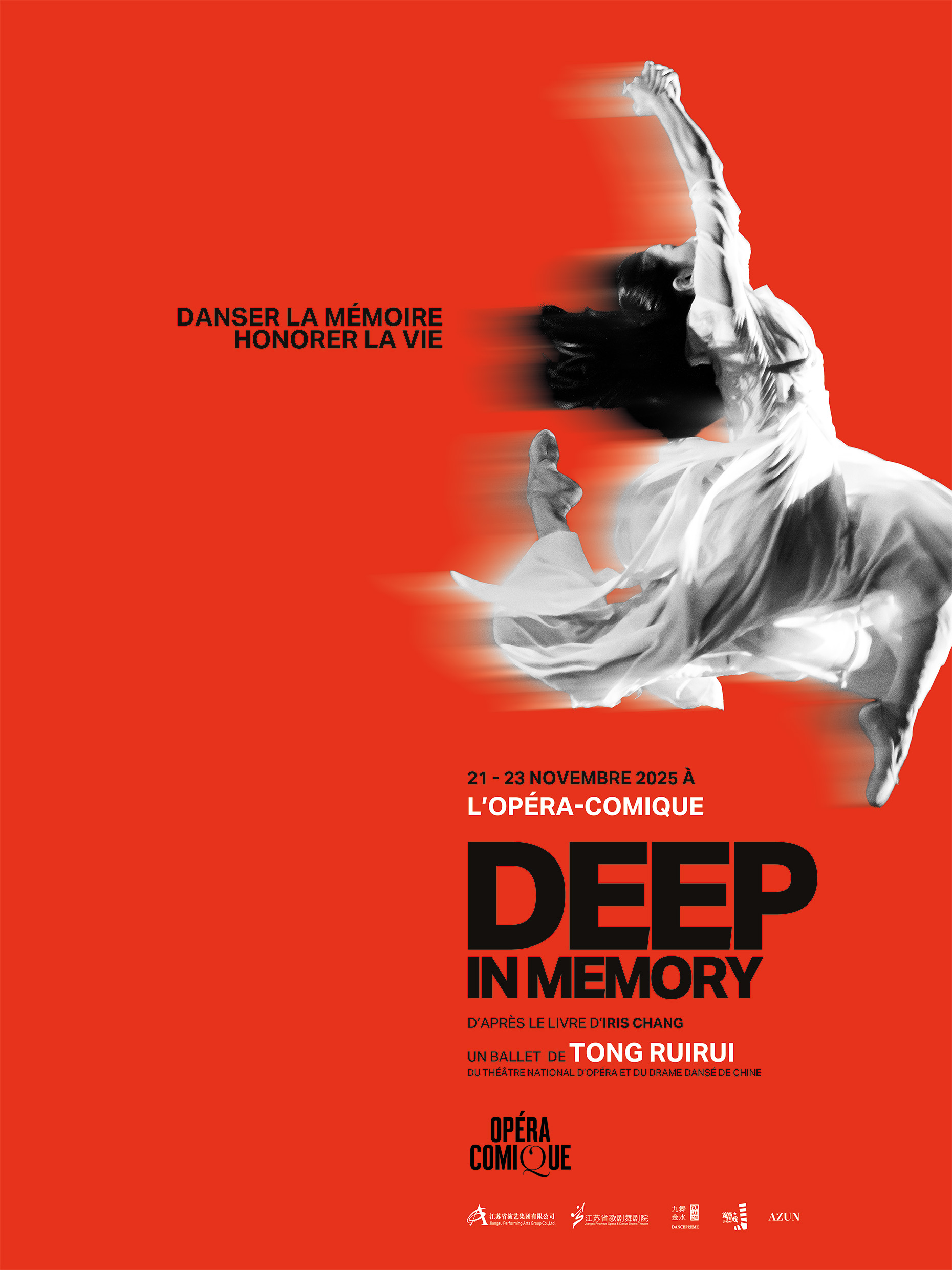 Deep In Memory est un ballet narratif contemporain créé en 2018 à Nankin et qui tourne depuis à travers la Chine. L'œuvre plonge le public dans une réflexion poignante sur la mémoire collective, à travers l’évocation du massacre de Nankin en 1937 - épisode historique tragique encore trop peu connu en Europe.